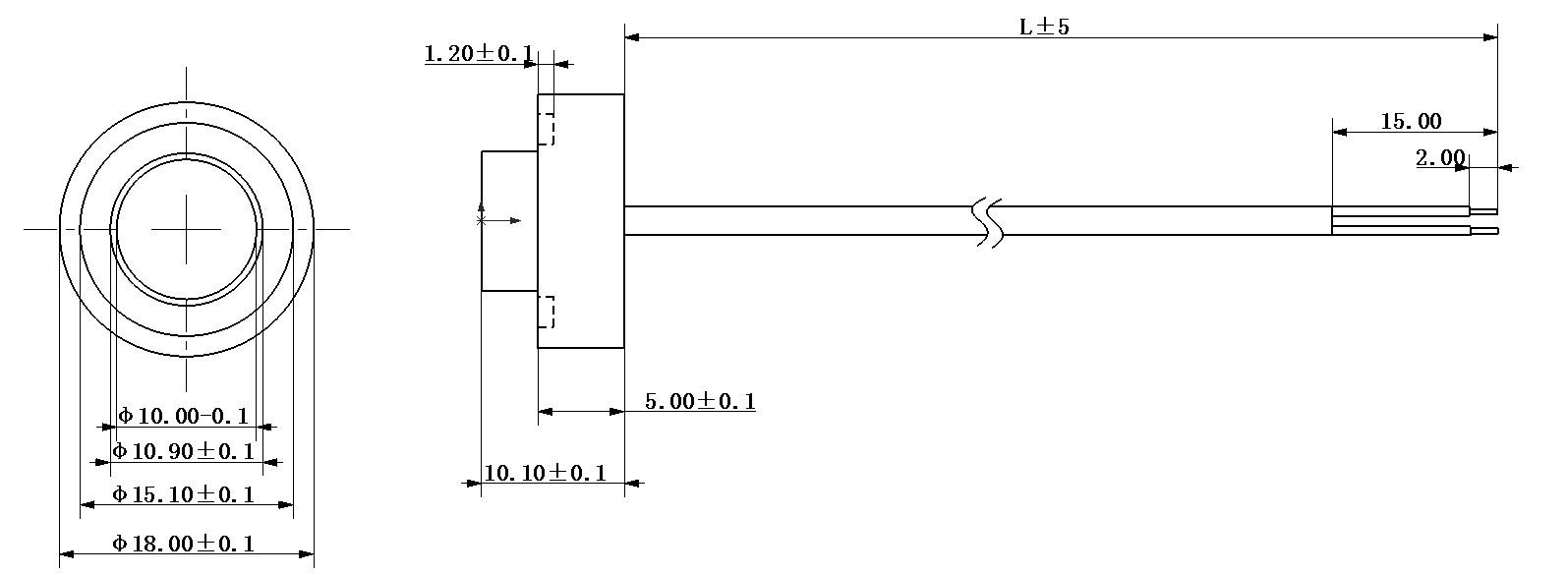 Shell material | polymer material | Emitting surface size | φ10mm | Mounting surface size | φ18x10x11mm |
