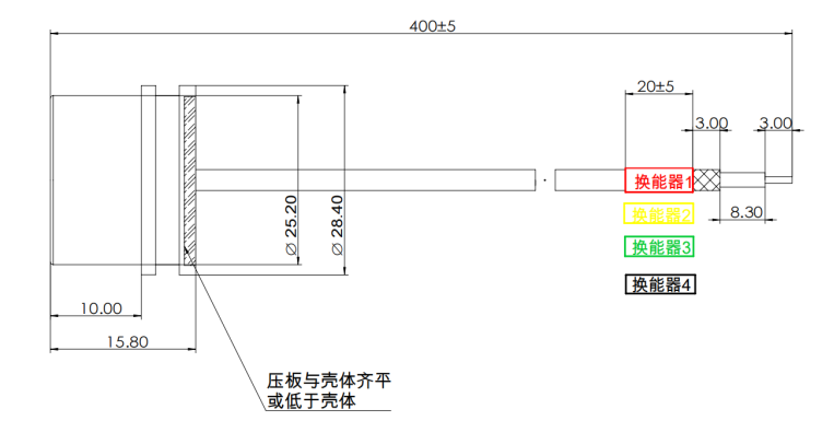 耐壓 | <2.6Mpa | 發(fā)射波束角 | 5°-10° | 接收靈敏度 | ≥200mv |